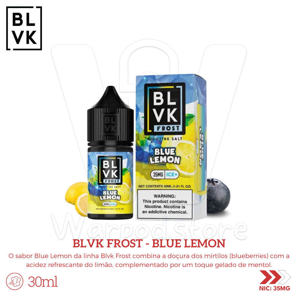 - 1x Frasco de 30ml de Blvk Frost Blue Lemon Nic Salt Juice