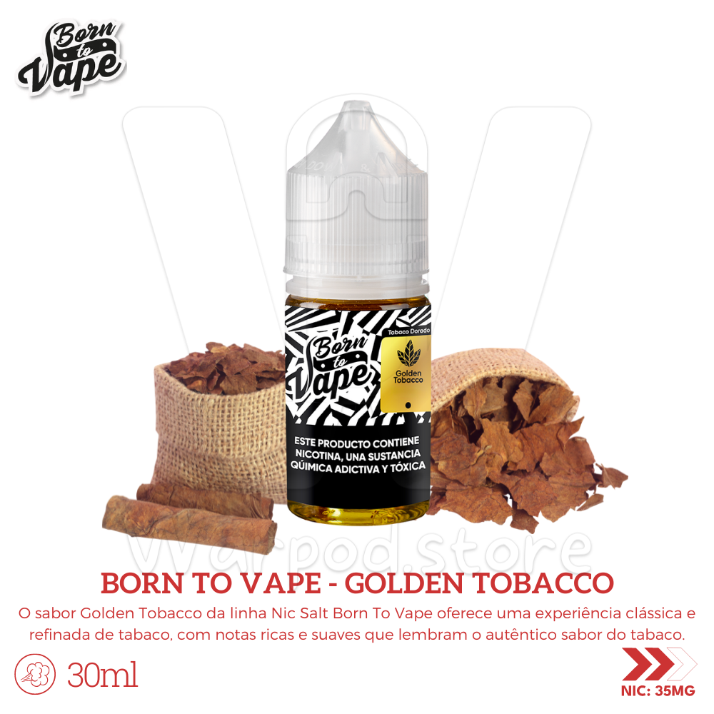 - 1x Frasco de 30ml de Born To Vape Golden Tobacco Nic Salt Juice