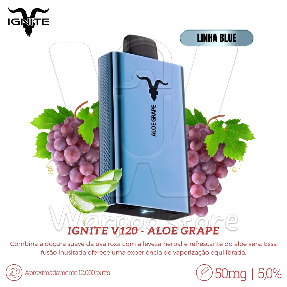 O Aloe Grape da linha Ignite V120 BLUE combina a doçura suave da uva roxa com a leveza herbal e refrescante do aloe vera. Essa fusão inusitada oferece uma experiência de vaporização equilibrada, sofisticada e agradável, ideal para quem busca um perfil de sabor delicado, aromático e levemente refrescante.