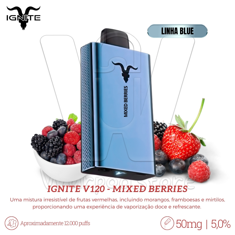 Pod Descartável Ignite V120  – Mixed Berries é um dispositivo de vaporização descartável de alta capacidade, projetado para proporcionar uma experiência prolongada e satisfatória aos usuários. Com um sabor irresistível de frutas vermelhas, incluindo morangos, framboesas e mirtilos, este dispositivo oferece uma sensação frutada e refrescante a cada puff.