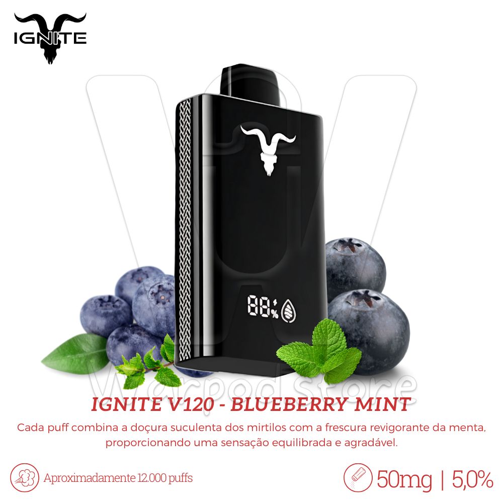 Desfrute de uma experiência de vaping refrescante com o Ignite V120 no sabor Blueberry Mint. Cada puff combina a doçura suculenta dos mirtilos com a frescura revigorante da menta, proporcionando uma sensação equilibrada e agradável.
