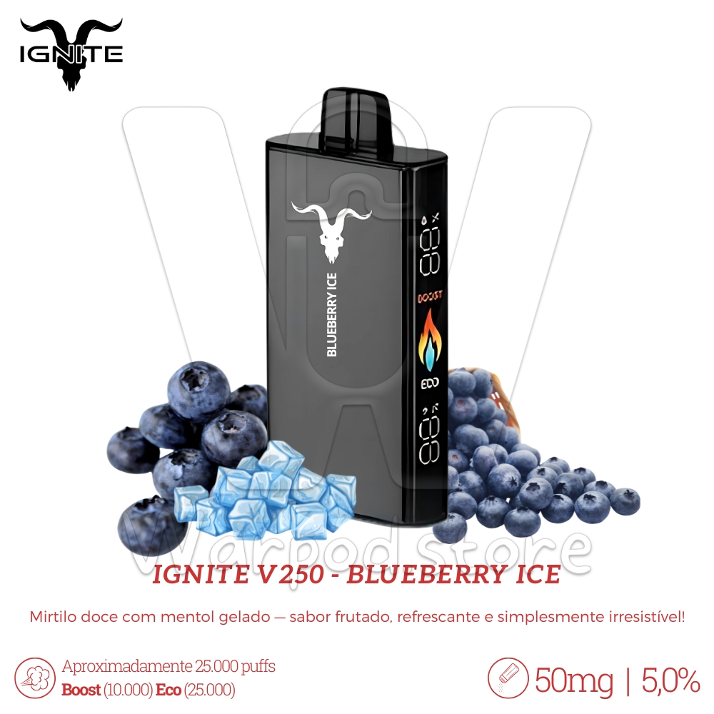 Pod Descartável Ignite V250 25.000 – Blueberry Ice (25.000 Puffs)
