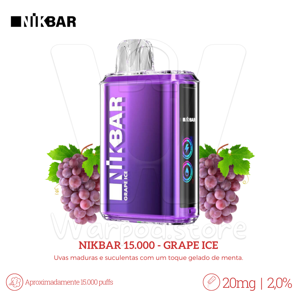 O Grape Ice da Nikbar é um sabor que combina a doçura das uvas maduras com um toque refrescante de menta. É uma opção popular entre os amantes de sabores frutados e mentolados.