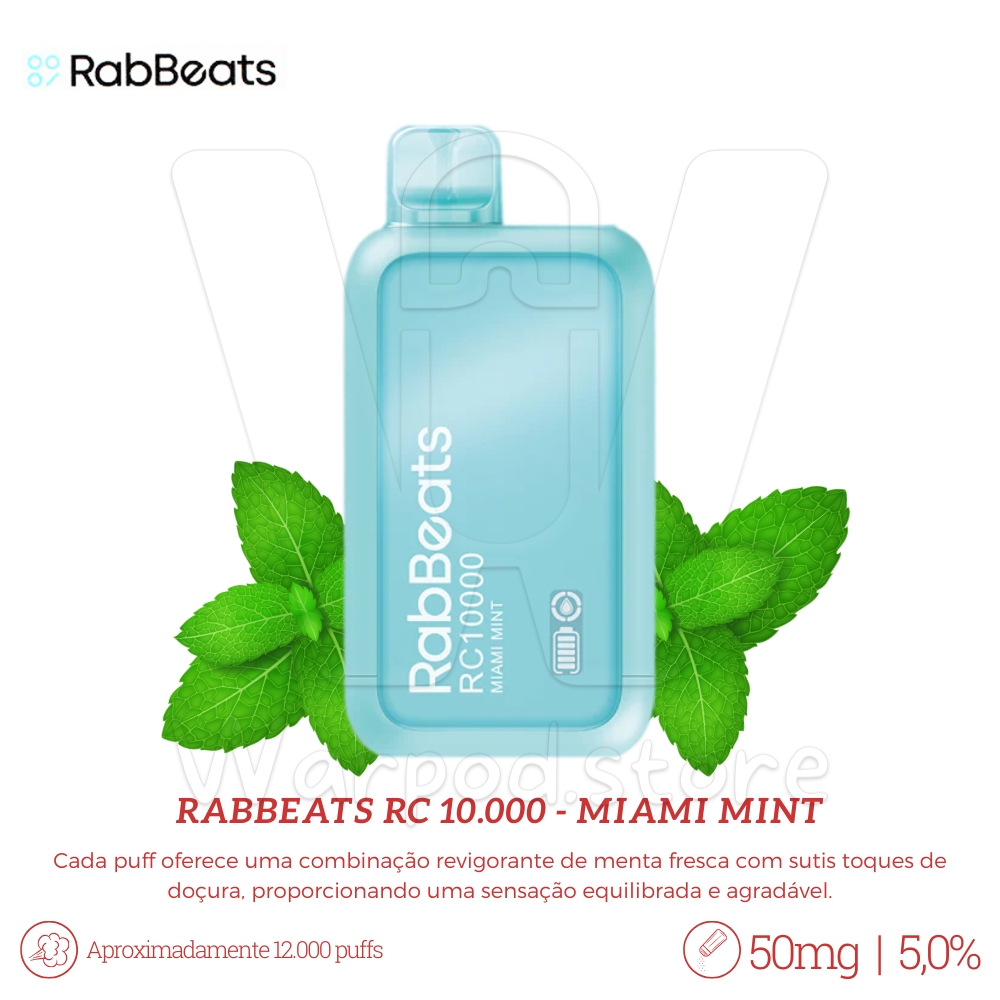 Desfrute de uma experiência de vaping refrescante com o RabBeats RC 10.000 no sabor Miami Mint. Cada puff oferece uma combinação revigorante de menta fresca com sutis toques de doçura, proporcionando uma sensação equilibrada e agradável.